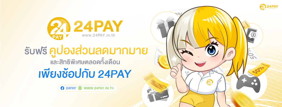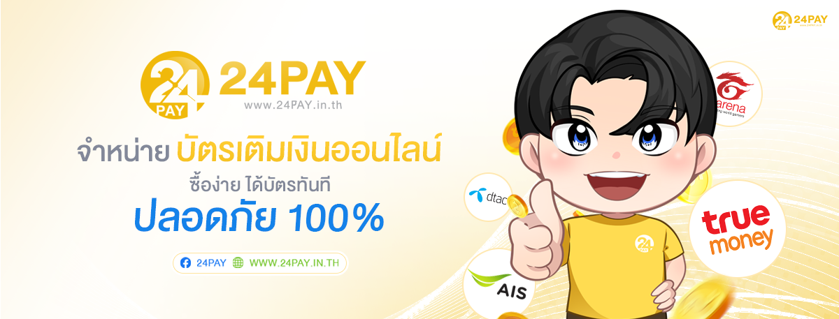 บริษัท 24PAY เป็นเพียงตัวแทนจำหน่ายเท่านั้นไม่มีส่วนเกี่ยวข้องกับองค์กรหรือบุคคลใดๆที่ท่านนำบัตรไปใช้งาน โปรดระวังมิจฉาชีพแอบอ้างบัญชีเราเพื่อหลอกให้ผู้อื่นจ่ายค่าสินค้าแทน หากมีปัญหามีบริการดูแลลูกค้า 10:00 - 21:00 น. ทุกวันไม่มีวันหยุด
